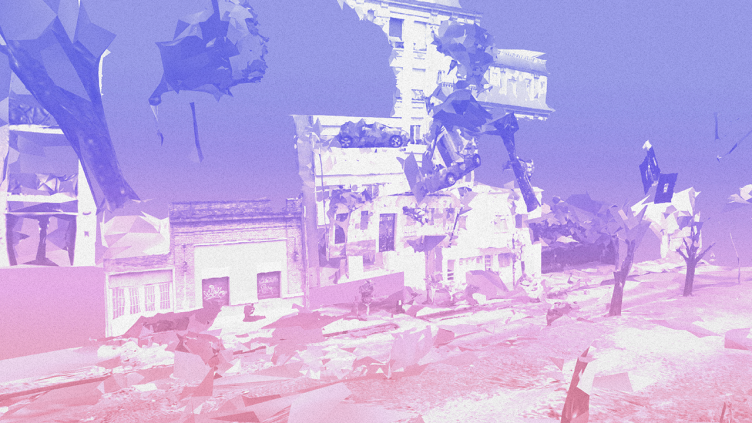 A medida que caen y se entremezclan, los lugares comienzan a fundirse en uno. Los límites del aquí y el allá se desdibujan junto con los del antes y el ahora. Cuanto más nos alejamos de su centro, más se difuminan estos objetos vacíos e incompletos, que van perdiendo detalles a medida que caen y se deshacen, como el agua en el agua