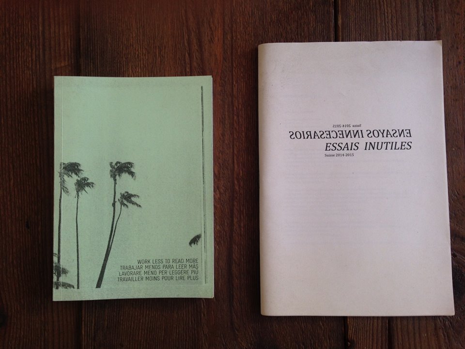 Patricio Gil Flood. Estudió en la UNLP, en CIA Centro, y en ECAV, en el programa de Maestría en Artes en Esferas Públicas en Suiza. Desde hace algunos años, lleva su práctica cuestionando las nociones de trabajo y ocio en las artes, como una forma de investigación en el proyecto itinerante Escuela de no trabajo (http://www.ecoledunontravail. org ). También ha estado participando de experiencias colectivas. Algunos ejemplos de estos son: MACACO Press (http://www.macacopress.ch ), Los Individuos Radio, La Dispersión, AAS (Agencia de Asuntos Subtropicales), Artistas Organizados, y la micro sociedad de artistas Proyecto V.