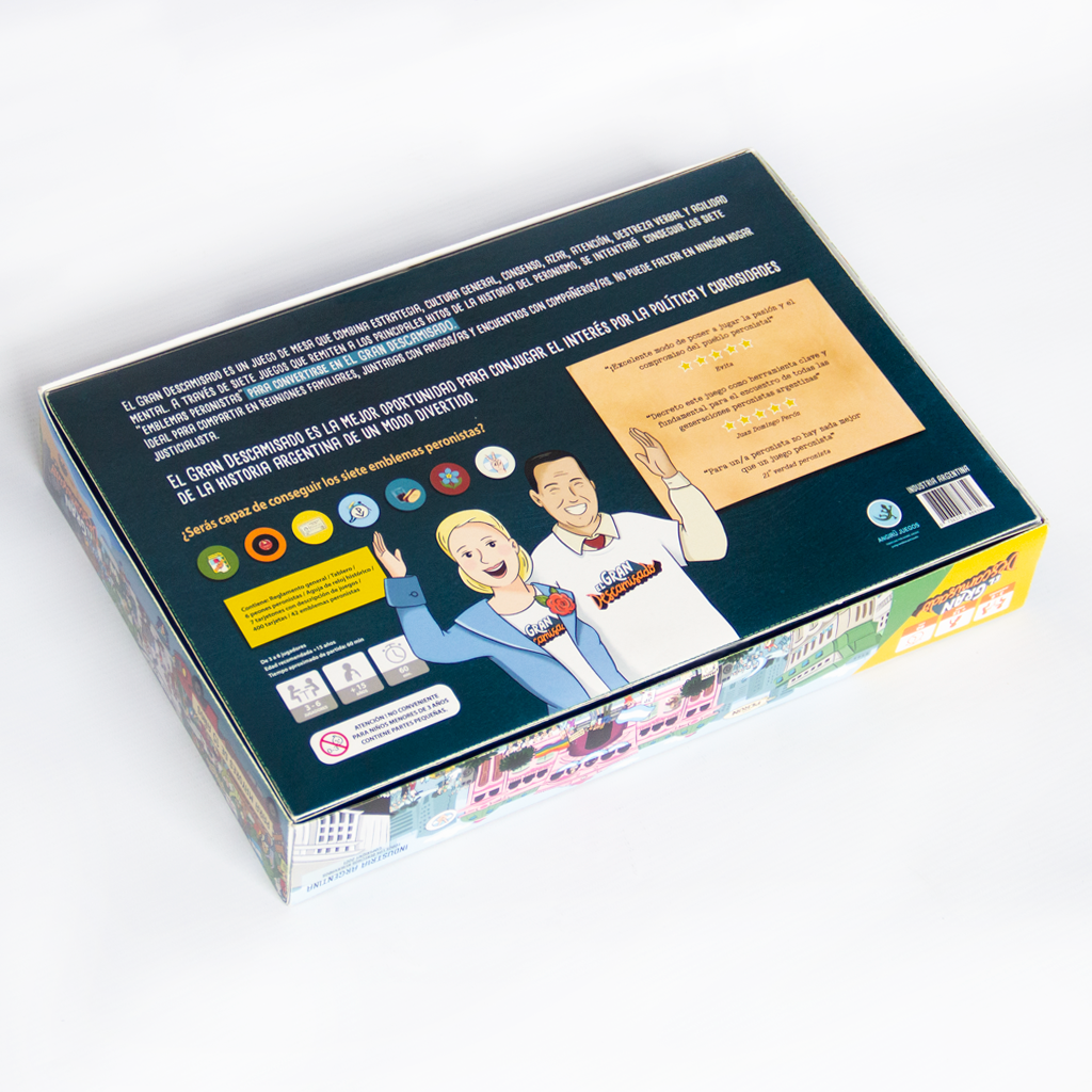 El Gran Descamisado es un juego de mesa de contenido histórico y cultural, que remite a los principales sucesos de la historia del peronismo desde 1945 a 1973. Estos se recrean combinados a partir de siete dinámicas distintas, que ponen a prueba la cultura general, la capacidad de consenso, estrategia, destreza verbal, agilidad mental, pero también azar. No se trata de un juego puramente de trivias sobre datos históricos, por lo tanto no requiere conocer la historia del peronismo para poder jugarlo y ganar.