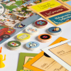 Contiene: Reglamento general – Tablero – 6 peones peronistas – Aguja de reloj histórico – 7 tarjetones con descripción de juegos – 400 tarjetas – 42 emblemas peronistas